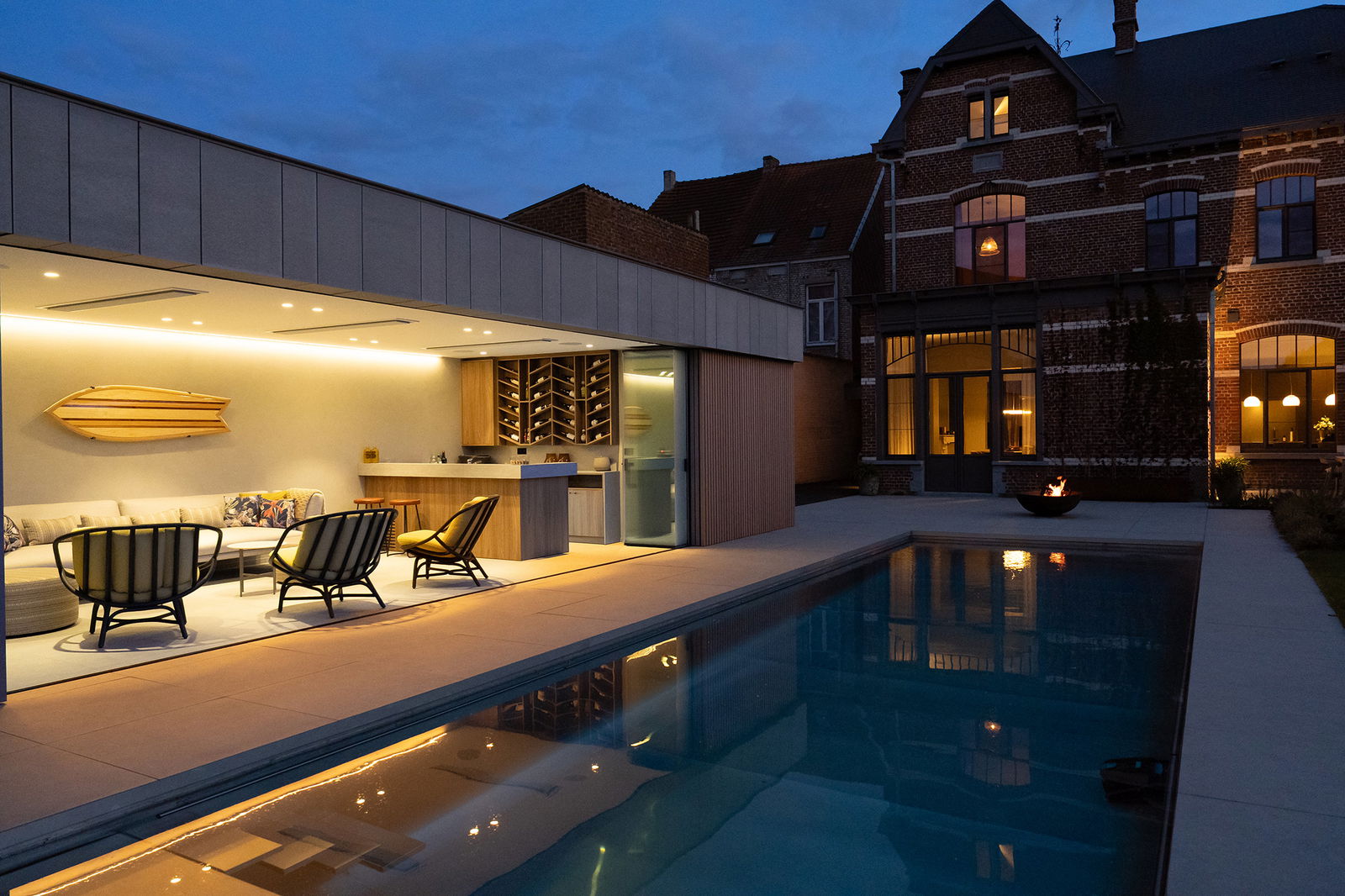Pool and pool house with bar, landscaped gardens and terraces, versatile indoor/outdoor event areas with modern tech and AV for meetings and workshops, and secure gated parking for up to 3 cars.